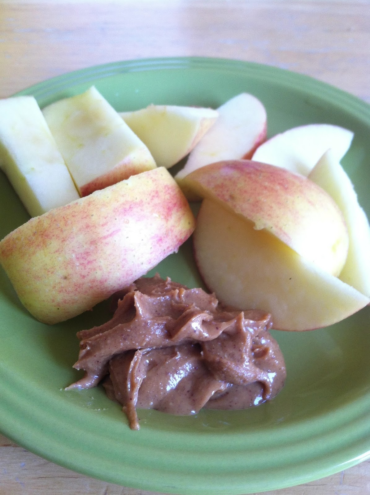 18. 1-2 tablespoons of peanut butter with apple wedges.